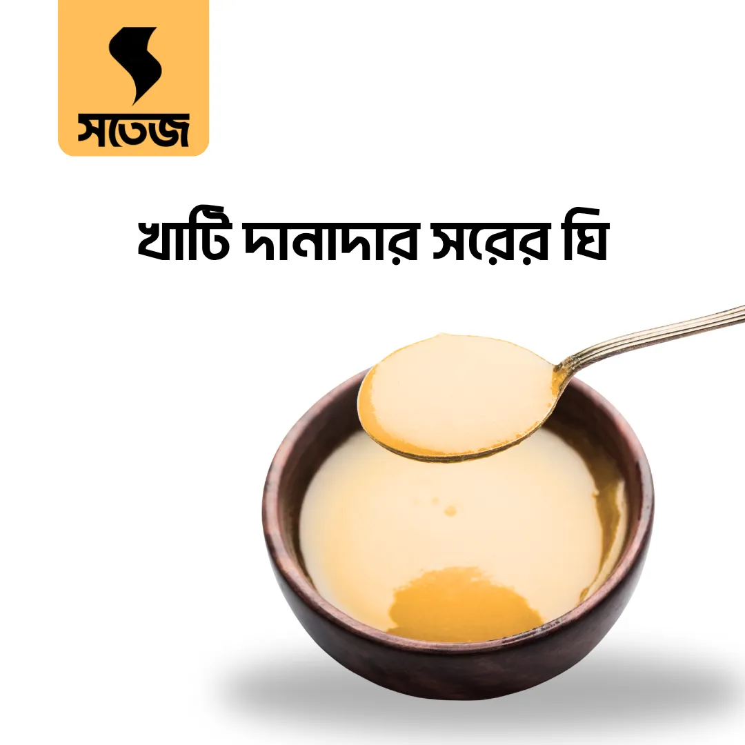 বিশুদ্ধ দুধের ক্রিম ও সর থেকে তৈরি সতেজ Pure Desi Ghee – প্রাকৃতিক সুবাস ও পুষ্টিতে ভরপুর ঘি যা শক্তি ও রোগপ্রতিরোধ বাড়ায়।